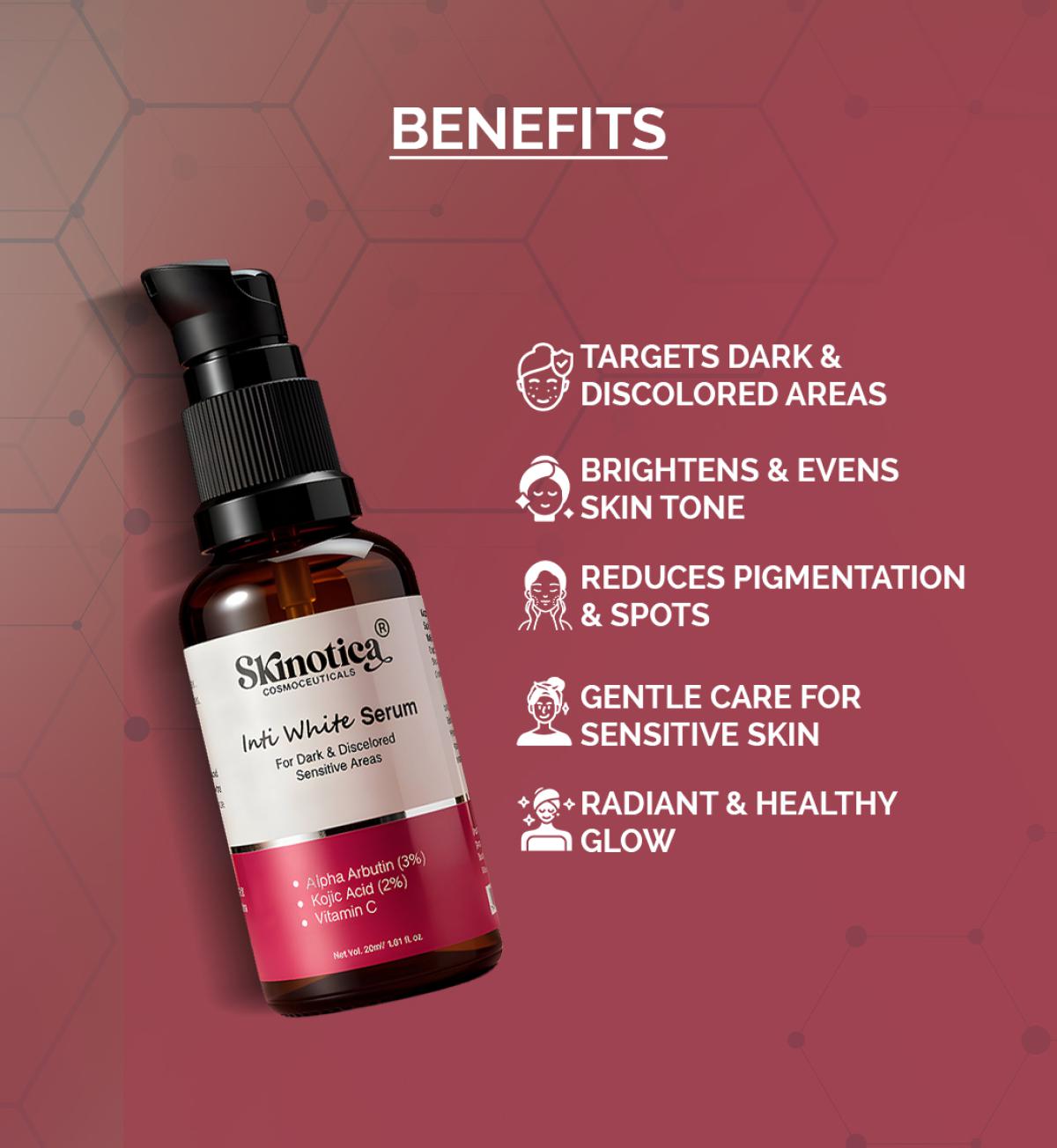 SKINOTICA COSMOCEUTICALS INTIWHITE SERUM Bikni, Neck, Knee & Elbow Whitening Serum with Alpha Arbutin, Kojik Acid and Vitamin C / Intimate Area Whitening All Skin Types-30ml (30 ml)
