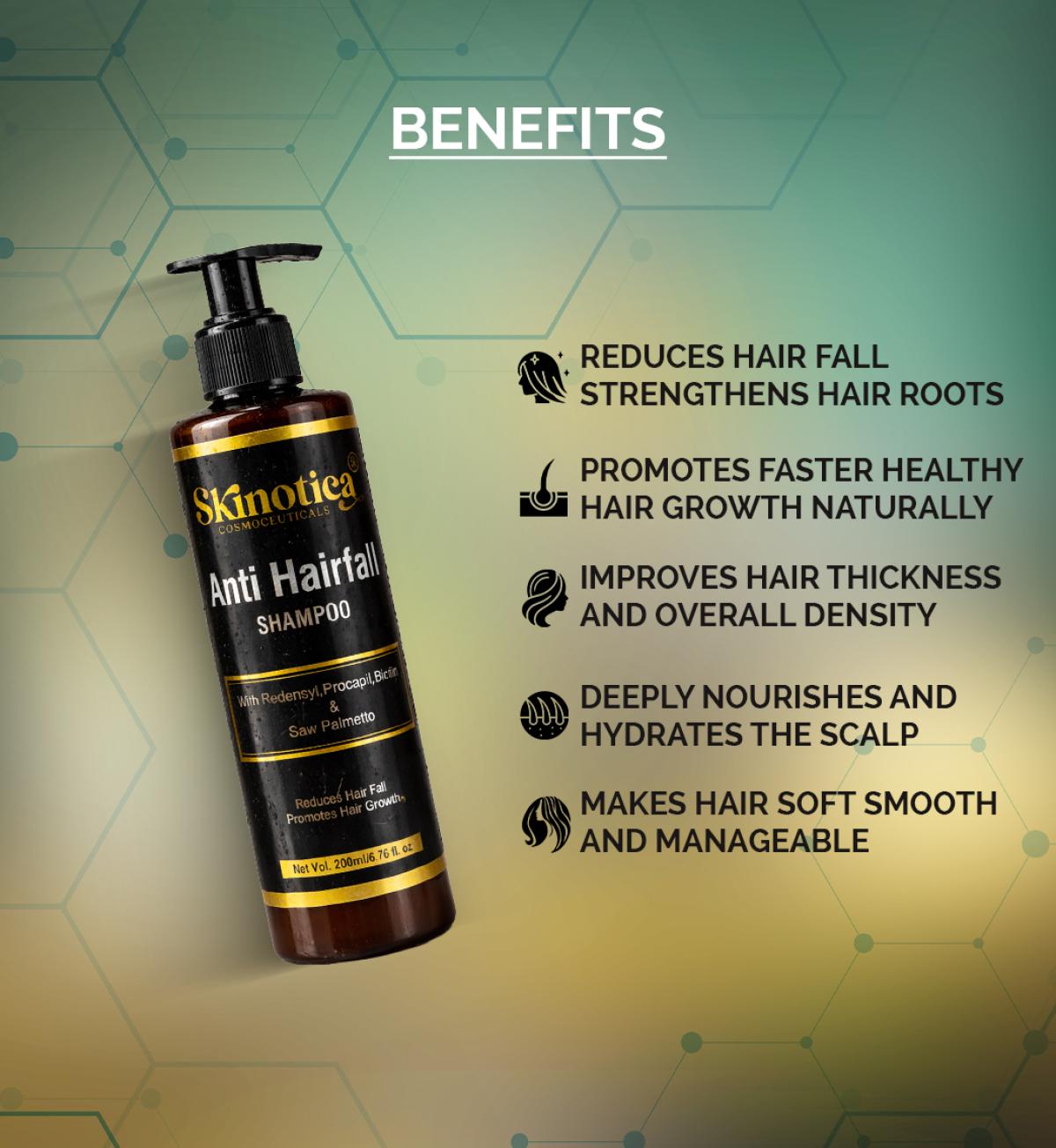 ANTI-HAIRFALL SHAMPOO BY SKINOTICA COSMOCEUTICALS REDUCES HAIR FALL AND PROMOTES HAIR GROWTH